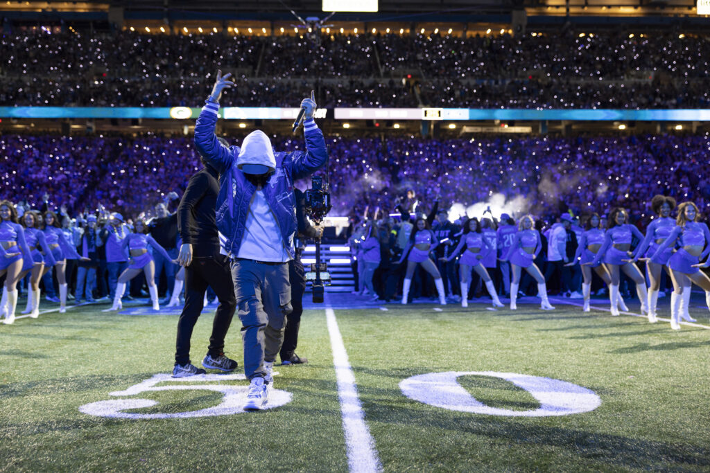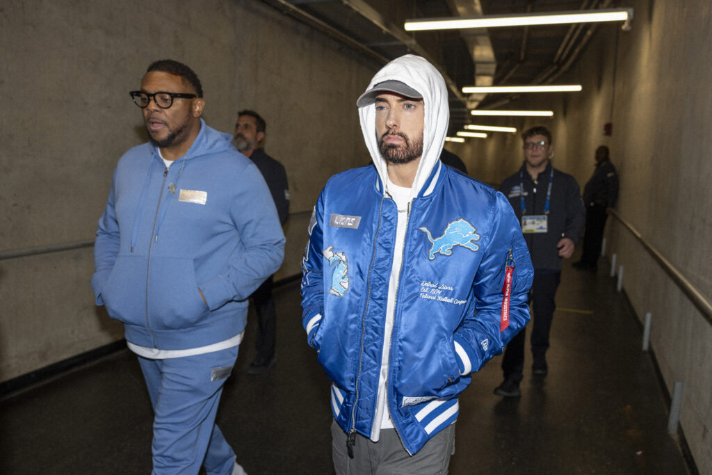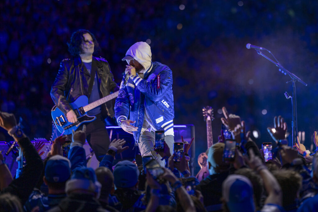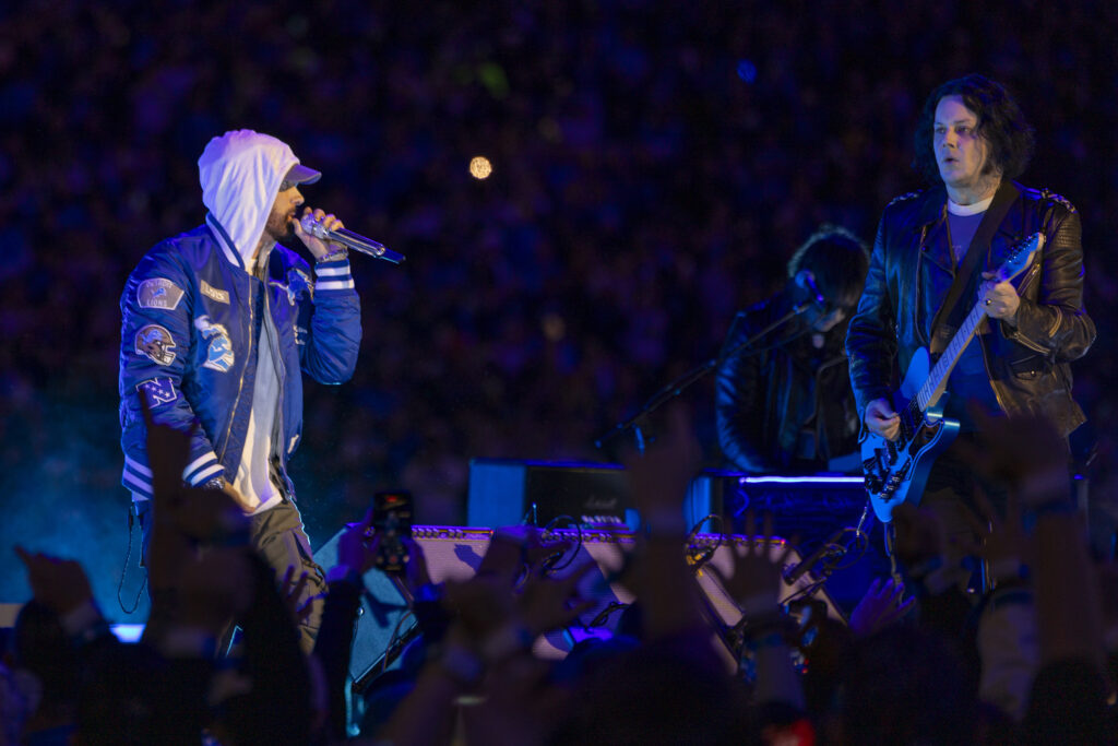 Eminem joined Jack White on stage for a surprise performance at this year’s Detroit Lions’ Thanksgiving Halftime Show, which was co-produced by Eminem and Paul Rosenberg.