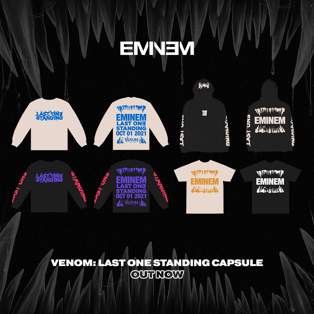 Exclusive to the Official Eminem Store, this collection features designs inspired by the song “Last One Standing” by Skylar Grey ft. Polo G, Mozzy, & Eminem – from the motion picture ‘Venom: Let There Be Carnage’. Shop now.